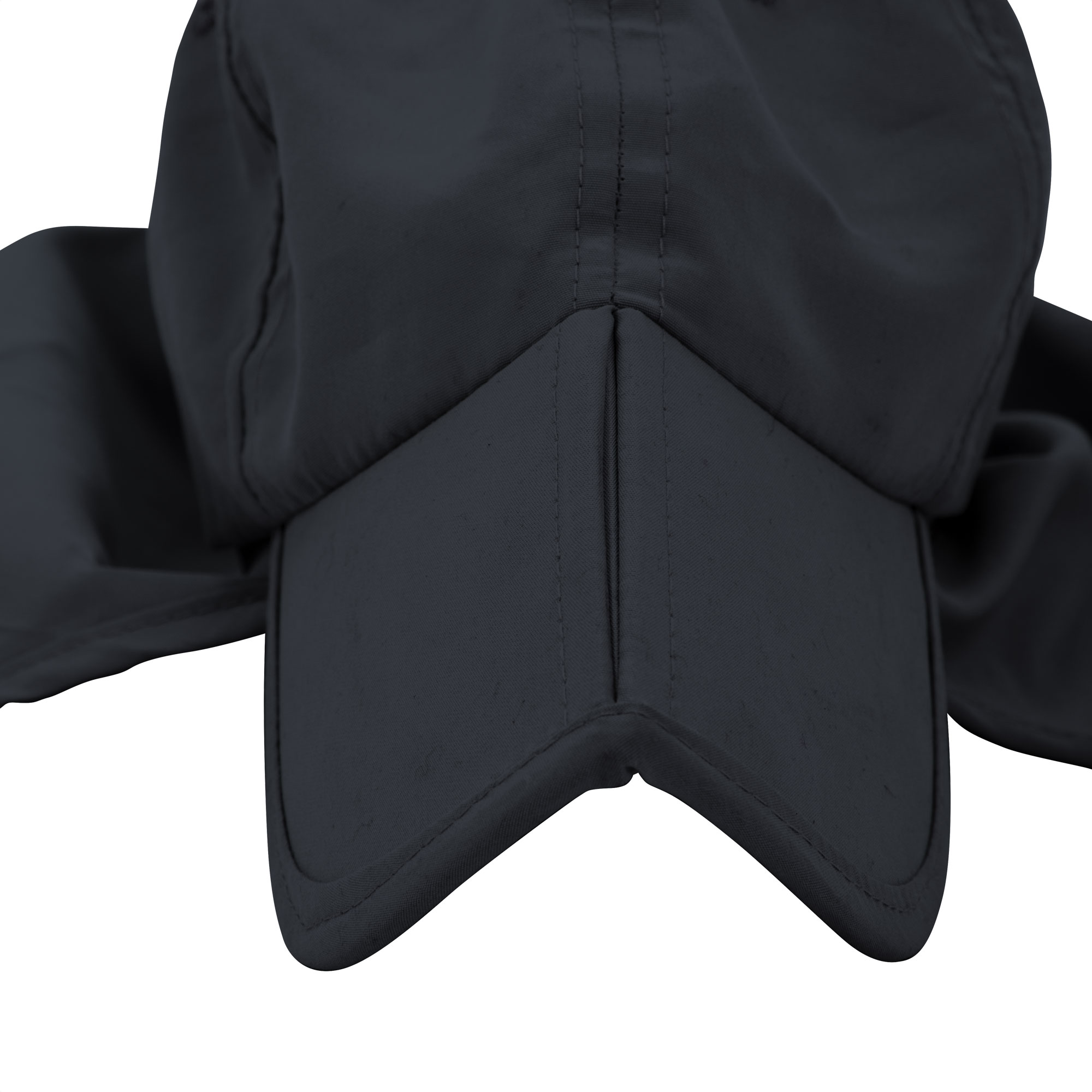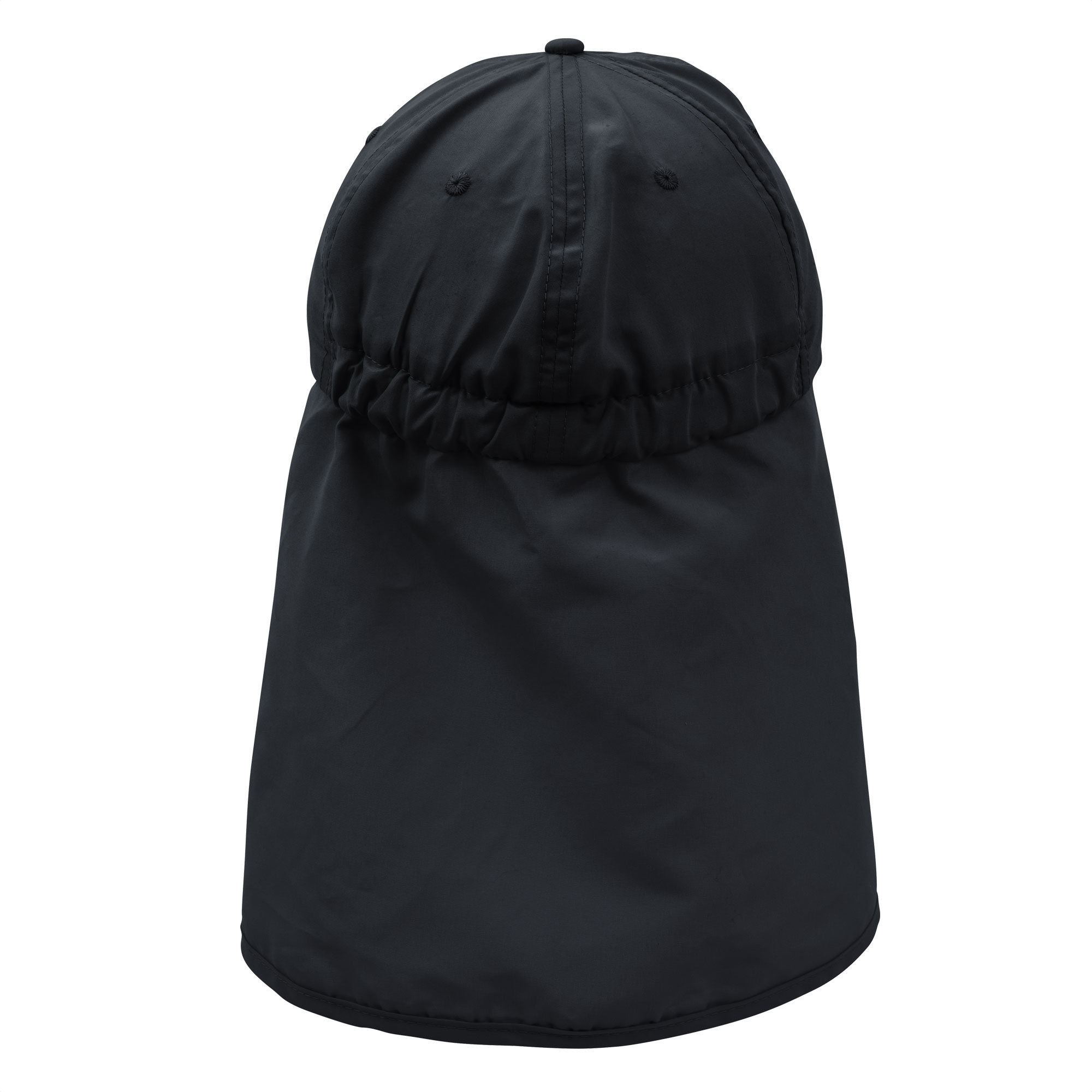 Gorra con visera y cubre cuello. 6 paneles. Orificios de ventilación bordados. Botón forrado. Banda absorbente de poliéster. Visera rígida plegable. Ajuste por banda elástica.